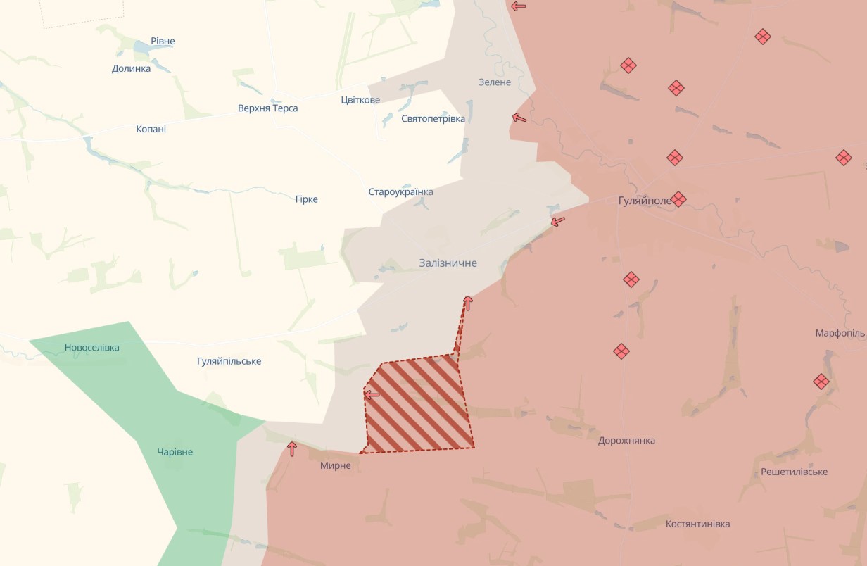 За даними експертів, нещодавно ворог мав успіхи поблизу села Мирне Пологівського району, що під Гуляйполем.