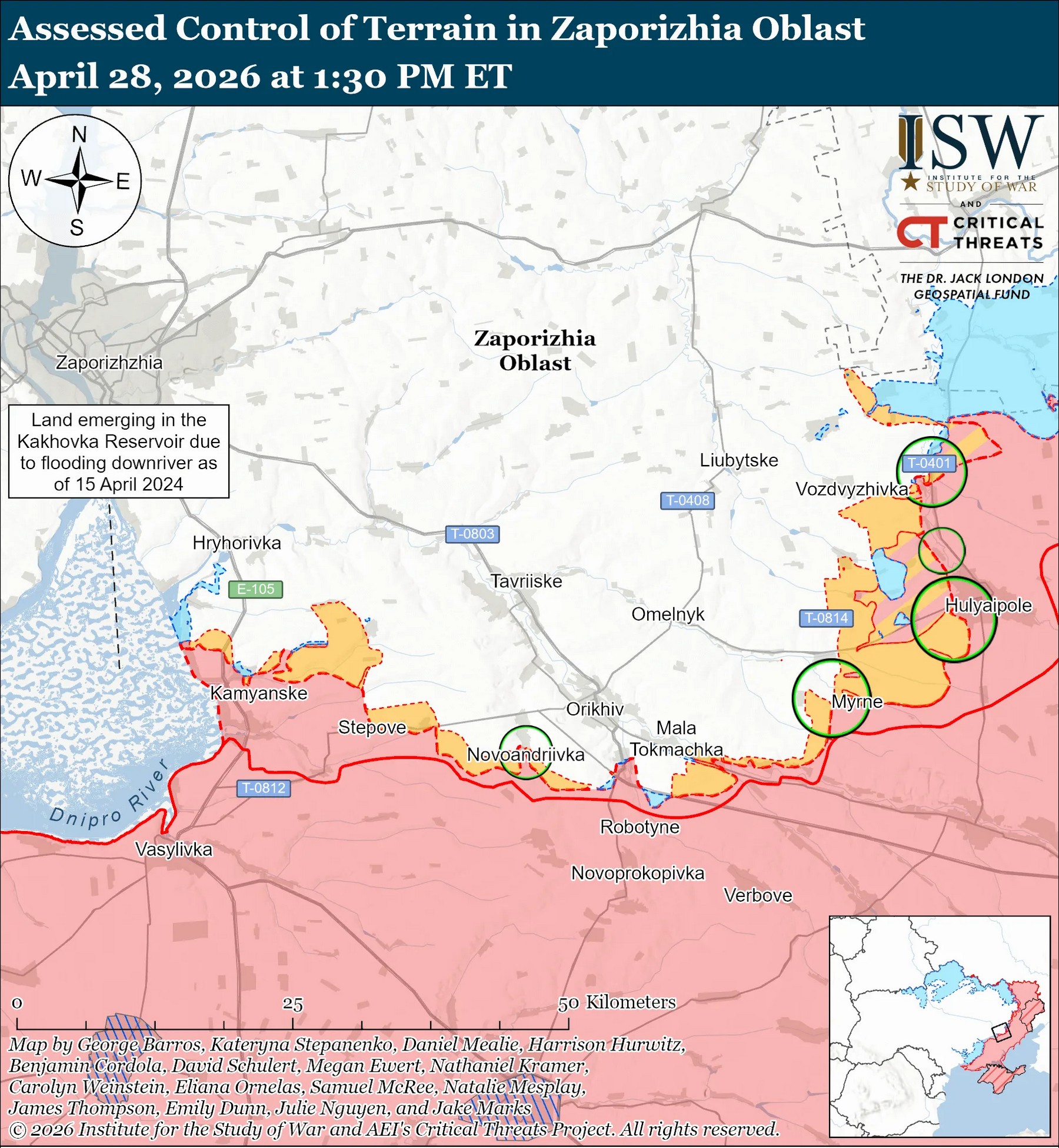 За оцінкою експертів, геолоковані кадри від 27 квітня, свідчать про те, що Сили оборони нещодавно просунулися у північній частині Новоданилівки (на південь від Оріхова). Окупанти обстрілювали українські позиції в селі.